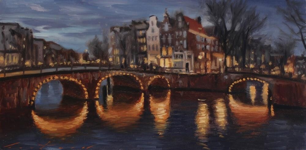 Amsterdam - oil painting on 8" x 16" canvas board One of the most famous bridges in Amsterdam is Torensluis and it is particularly stunning in the evening. All of my artwork is signed, comes with a certificate of authenticity and is securely shipped with tracking. Amsterdam - oil painting on 8" x 16" canvas board One of the most famous bridges in Amsterdam is Torensluis and it is particularly stunning in the evening. All of my artwork is signed, comes with a certificate of authenticity and is securely shipped with tracking. |