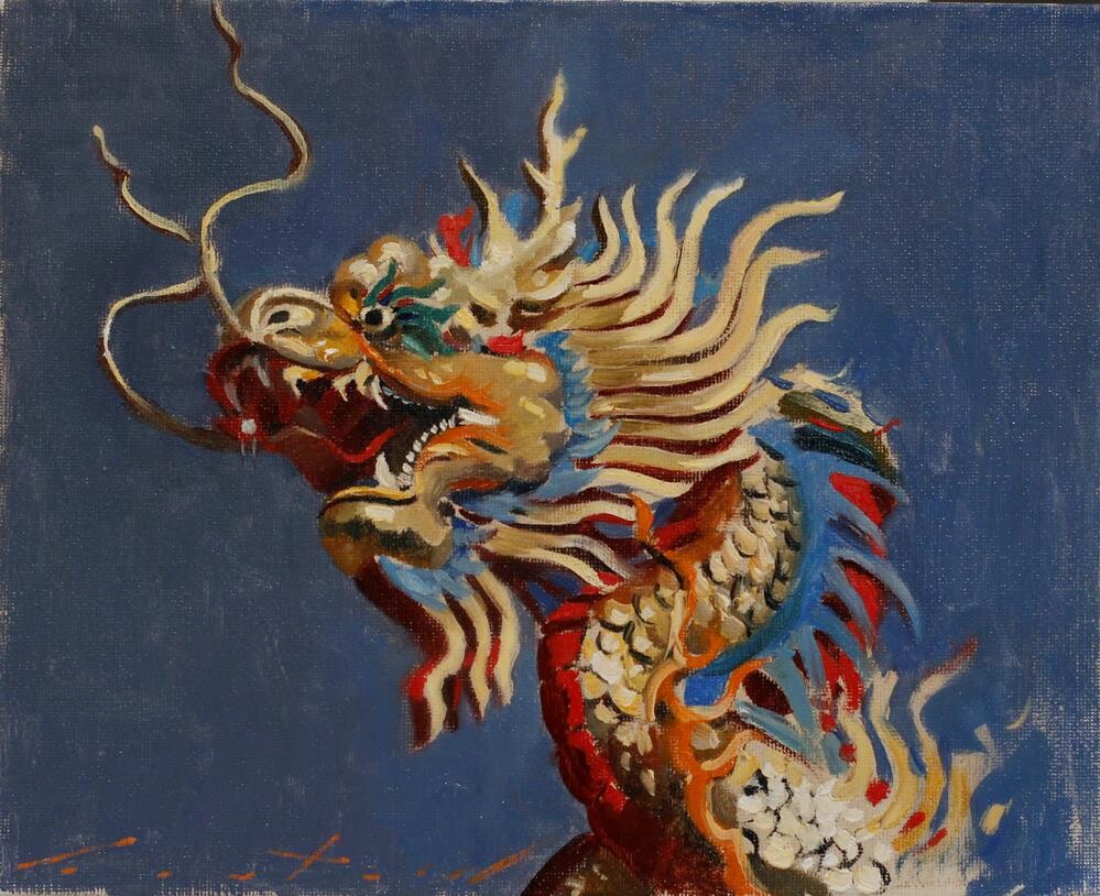 Taiwanese Dragon - oil painting on 8" x 10" canvas board