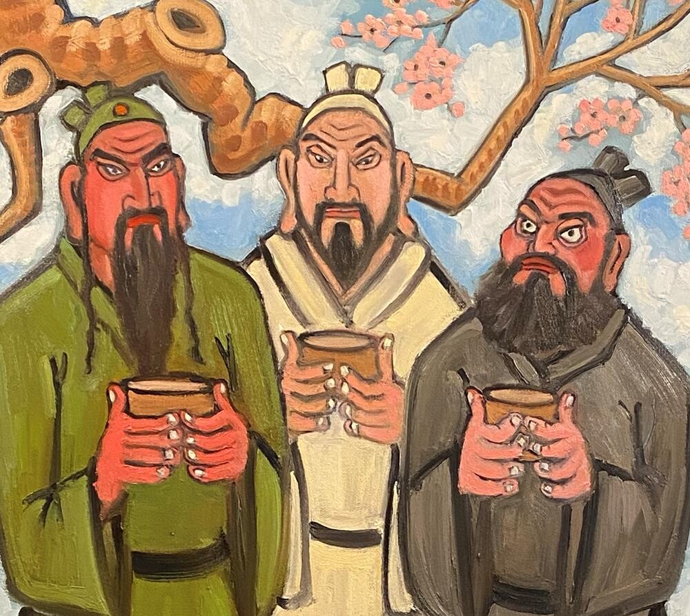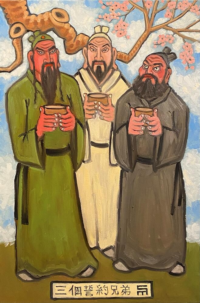 Three Oath Brothers, 30" x 40" oil on canvas. The Three Oath Brothers are, left to right, Guan Yu, Liu Bei, and Zhang Fei. Three main characters in the Chinese Classical Novel "Three Kingdoms". They took an oath to fight and die together in the remaining days of the decline and fall of the Han Dynasty. Three Oath Brothers, 30" x 40" oil on canvas. The Three Oath Brothers are, left to right, Guan Yu, Liu Bei, and Zhang Fei. Three main characters in the Chinese Classical Novel "Three Kingdoms". They took an oath to fight and die together in the remaining days of the decline and fall of the Han Dynasty. |