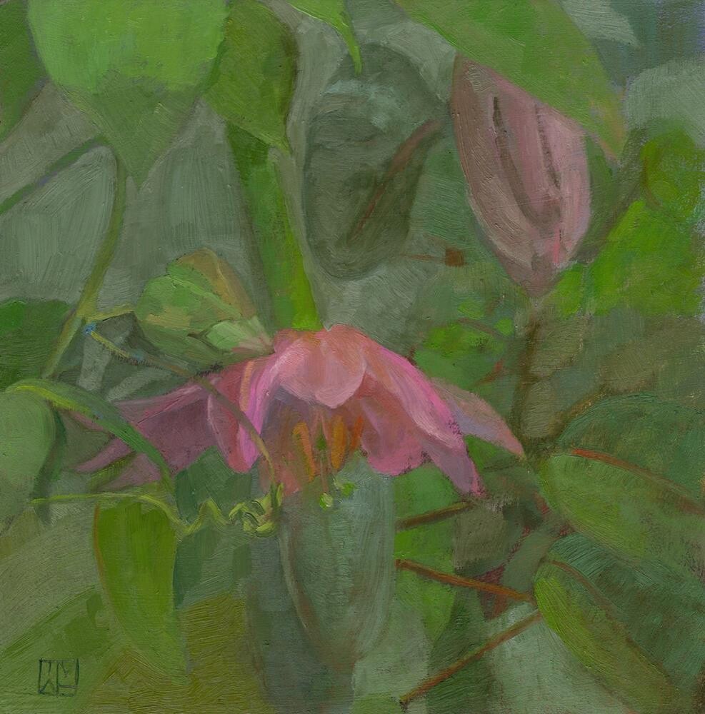 This scene comes from a misty day during a family trip to Hawaii eons ago. The flowers and fruit are banana passionfruit. I always thought the reference photo was interesting, with most of the values being midtone. I hope the mistiness comes through here. And if not, I hope you like it anyway! This scene comes from a misty day during a family trip to Hawaii eons ago. The flowers and fruit are banana passionfruit. I always thought the reference photo was interesting, with most of the values being midtone. I hope the mistiness comes through here. And if not, I hope you like it anyway! |