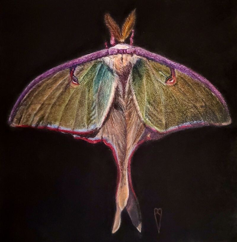 A Luna Moth done in colored pencil with a pan pastel background A Luna Moth done in colored pencil with a pan pastel background |